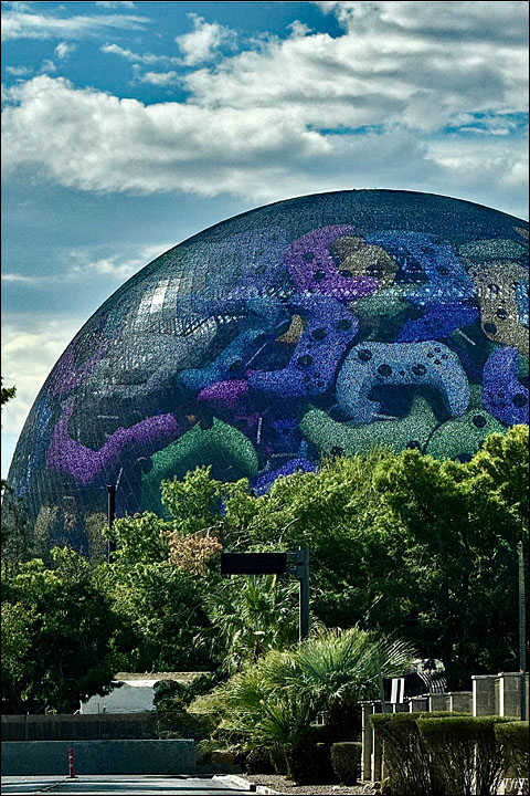 If you drive around Las Vegas, you are sure to see this structure. This picture dome can be seen from several different parts of the city. From some spots, you see a huge screen between buildings, from some places you see the top of this globular building, and when you get a fairly unobstructed view, you see the whole other-worldly construction that has become a striking feature of this city’s skyline.