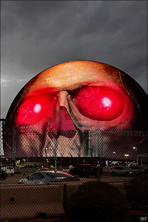 The Sphere is a block east of Las Vegas Boulevard / The Strip, just behind The Venetian. The automobile entry to it is from Sands Avenue (near its intersection with Koval Lane). You should also be able to enter it via the Venetian Convention Center (we left the Sphere that way — to get to The Strip).