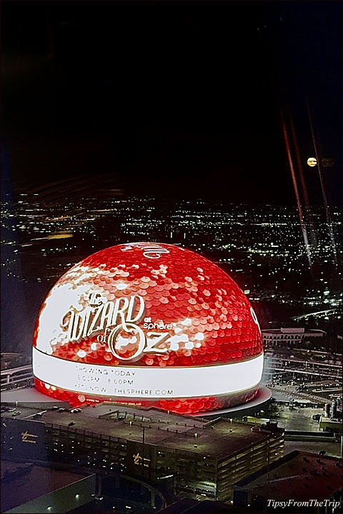 We just watched our very first film on the largest curved LED screen inside the largest spherical structure — the first-ever Sphere, located in Las Vegas. Inside the dome, Dorothy, Auntie Em, and Toto filled a huge screen that enveloped us with a unique experience! Tin Man, Scarecrow and the Cowardly Lion sometimes looked down at us, and at times, we looked down at them, skipping down the yellow brick road. We shared with the characters the stormy skies of Kansas and caught a glimpse of the blue sky from the ground of a field of poppies. We even had a towering Wizard of Oz glare down at us, and had a mini-experience of being caught in an event in Tornado Alley. And I’m still tipsy from the audio-visual adventure!