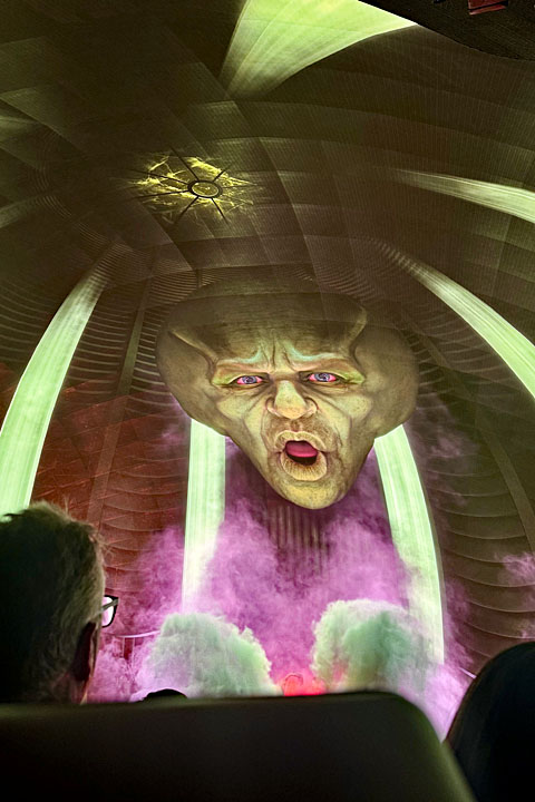 If you would like to catch a show inside, please note — especially if you have health issues or are pregnant  — that, along with the sights and sounds that come with it, there might be smells and feels. You might catch a few scents, and there might be a strong movement of air (think in terms of a generated gust), and some movement of your seats too.